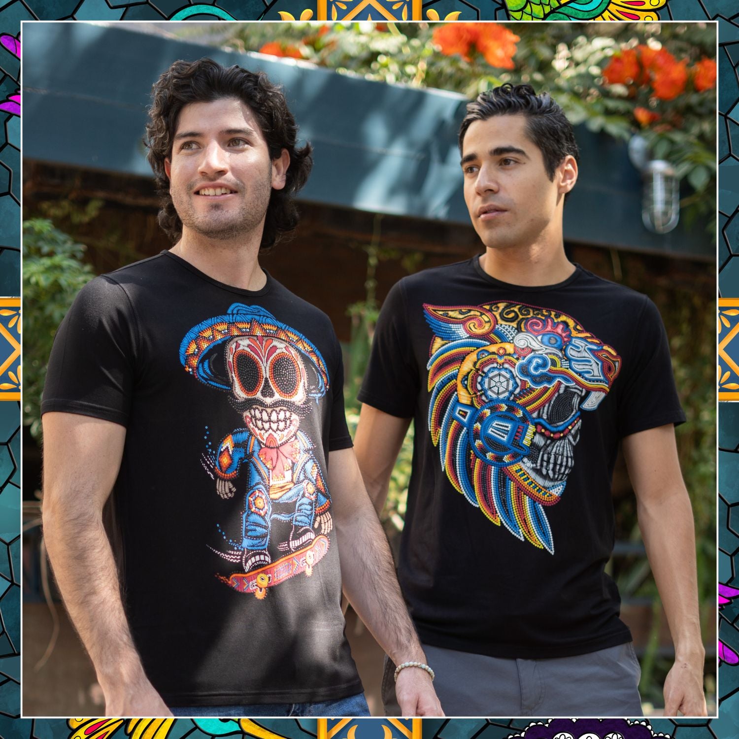 Every ¡AyGüey! design tells a story from Mexico's rich history. Handmade by talented Mexican artists, our pieces shine a spotlight on mighty warriors, powerful jaguars, and iconic skulls. Each shirt is more than just a fashion statement—it's a piece of our past, made for today.