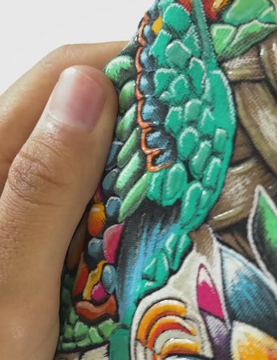Crafted with corrosion printing using 11 water-based inks, the design is heat-finished and enhanced with transparent HD gel for added depth. "Izahuatl" is a vibrant tribute to the artistry, culture, and spirit of Mexico woven into every detail.
