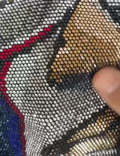 Crafted with our beading technique, each stone was meticulously hand-applied using heat. This full multi-color beading application brings dynamic shine, texture, and power to every detail.