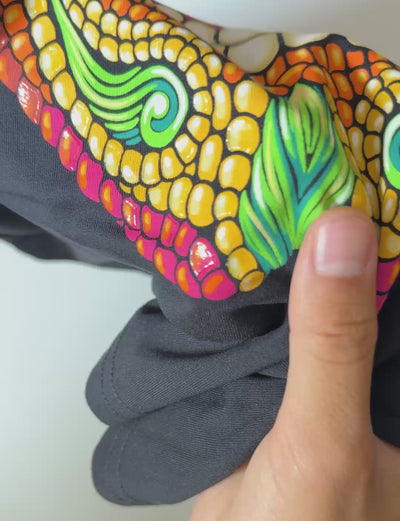 Introducing Elotillo, a colorful design that blends the symbolism of the skull with the essence of corn - two powerful icons of Mexican culture. The skull represents the cycle of life and death, while the corn, a sacred grain of renewal and sustenance, reminds us of growth, transformation, and hope. Together, they celebrate the eternal rhythm of existence.